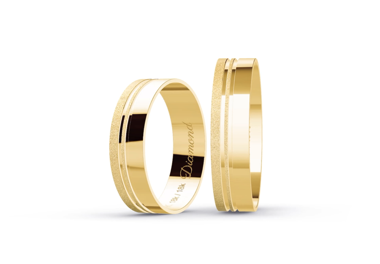 Uma joia que traduz a eternidade do amor em cada detalhe. A aliança Golden Horizon é confeccionada em ouro 18k com um acabamento diamantado, criando um brilho único e sofisticado. Com 5mm de largura, seu design moderno apresenta um elegante friso central, que adiciona um toque de exclusividade e requinte.