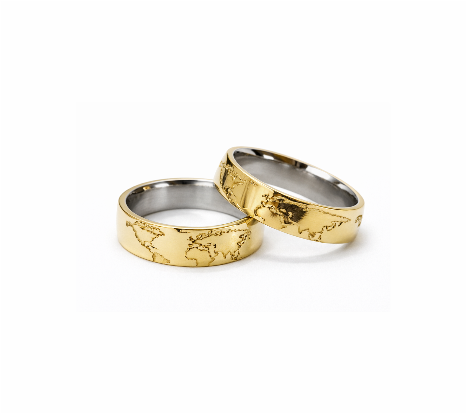 Modelo: Par de alianças com mapa mundi em relevo