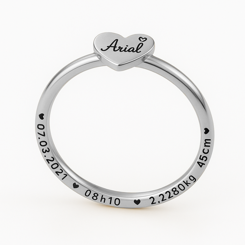 Este anel delicado combina elegância e afeto em um design minimalista. Produzido em ouro ou em prata de alta qualidade, sua estrutura fina sustenta um charme exclusivo em formato de coração, gravado com o nome que desejar em letra cursiva. Leve, confortável e sofisticado, é perfeito para presentear alguém especial ou eternizar um nome significativo com beleza e sutileza. Ideal para uso diário, sozinho ou em composições com outros anéis finos.