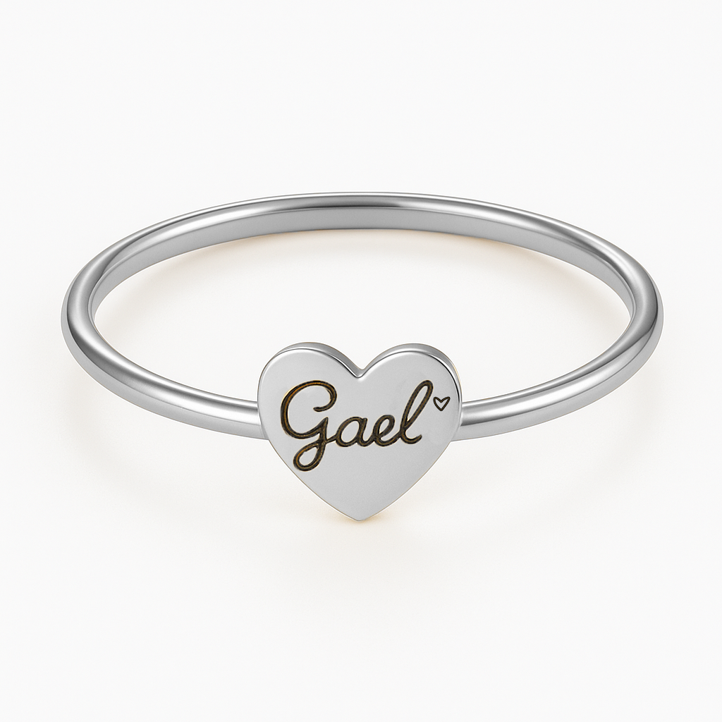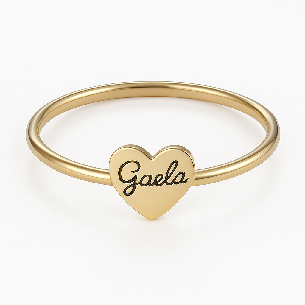 Este anel delicado combina elegância e afeto em um design minimalista. Produzido em ouro ou em prata de alta qualidade, sua estrutura fina sustenta um charme exclusivo em formato de coração, gravado com o nome que desejar em letra cursiva. Leve, confortável e sofisticado, é perfeito para presentear alguém especial ou eternizar um nome significativo com beleza e sutileza. Ideal para uso diário, sozinho ou em composições com outros anéis finos.
