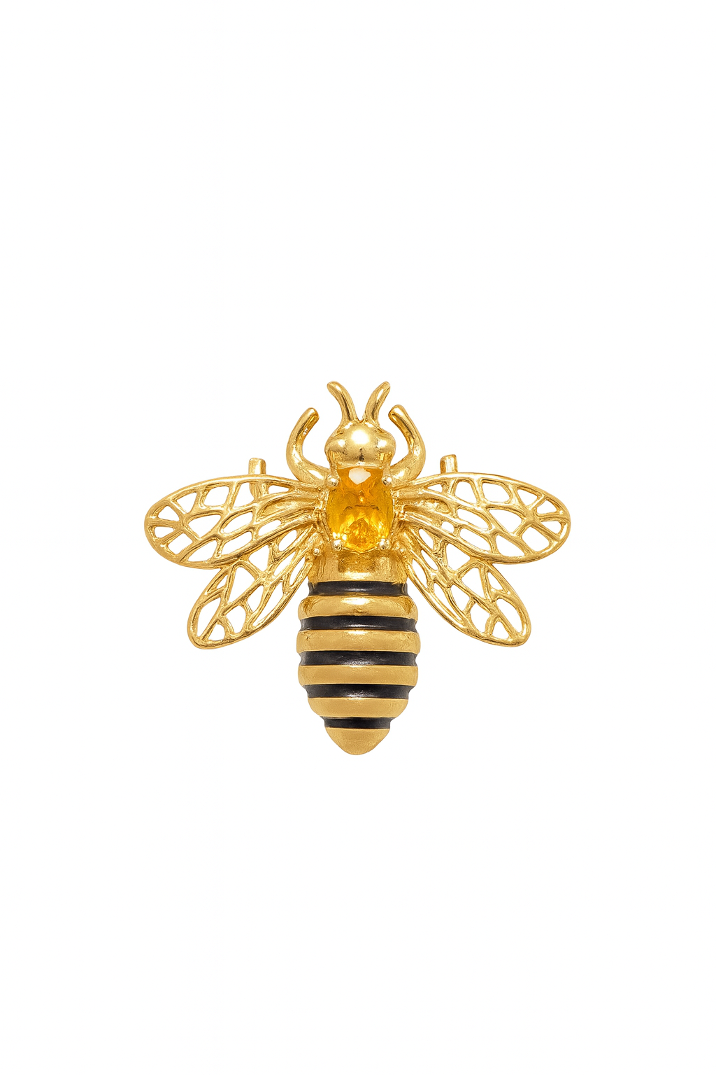 Delicada e poderosa, esta abelha em ouro 18k simboliza prosperidade, força e doçura em perfeita harmonia. Com acabamento minucioso e asas rendadas em ouro, a peça abriga uma pedra central que reflete luz com sutileza, criando um brilho discreto e sofisticado. Pequena no tamanho, imensa em significado, é a joia ideal para quem carrega beleza e propósito em cada detalhe.